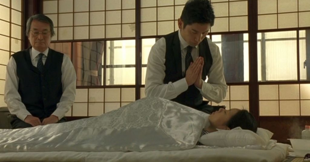 Dans ce film, ce qui fait mal au coeur lorsque l’on est Occidentaux, c’est cette vision qu’on les Japonais des employés des pompes funèbres. Pour ce peuple aux conceptions sociales et religieuses particulières, thanatopracteur est un métier peu honorable. Si on le choisi, on peut tout perdre de ses relations, et si l’on en avait pas, on restera sûrement dans la solitude. Considéré comme impur, et parfois comme un profiteur se faisant de l’argent sur le dos des morts, ce professionnel était ignoré, voire méprisé, en tout cas avant ce film dit « miraculeux » par son réalisateur.