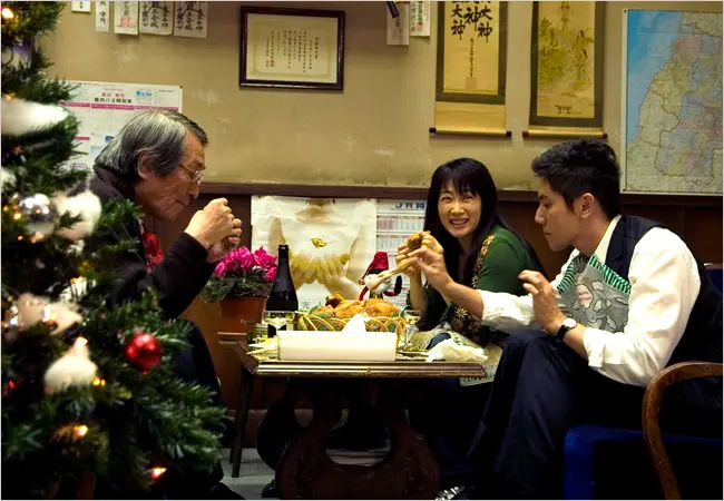 Ce qui m’a énormément touchée dans « Departures » c’est la relation qu’entretien Daigo avec son patron et sa secrétaire. Si d’abord l’ambiance est froide, très vite une complicité va s’installer et même un sentiment de filiation, comme s’il s’agissait d’une entreprise familiale. Le jeune professionnel va tout apprendre d’un « vieux de la veille » si je puis dire, dont les gestes ne sont pas guidés par des horaires de travail et le salaire qui en découle, mais bien par une passion de vouloir offrir un service humain et sacré, faisant toute la différence avec d’autres agents funéraires que l’on peut notamment voir à la fin du film.